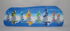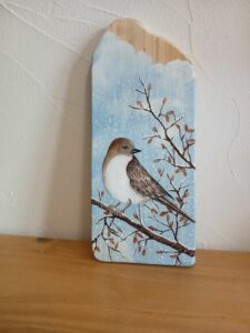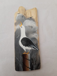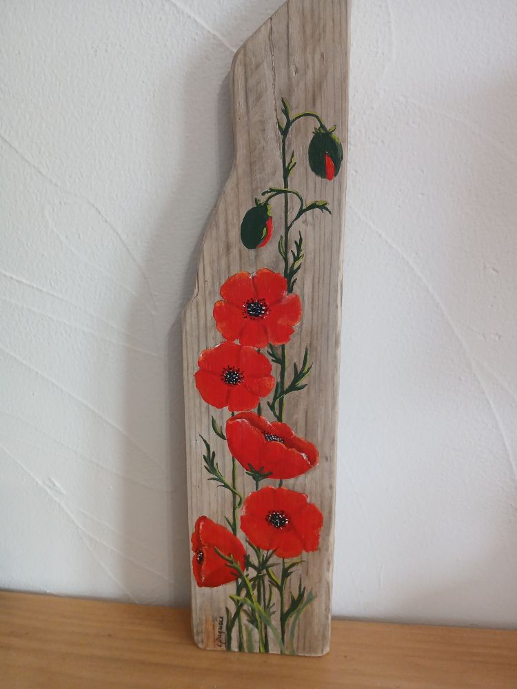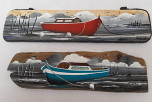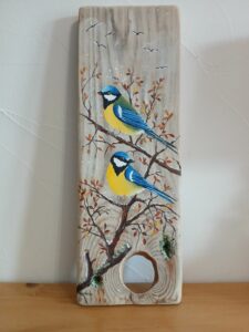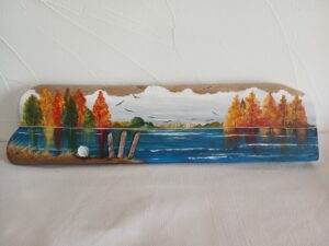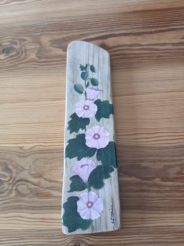Peu d’artistes peignent sur du bois flotté : de facture un peu plus classique, ils constituent une déco de base naturelle originale et s’adaptent facilement sur des surfaces réduites.