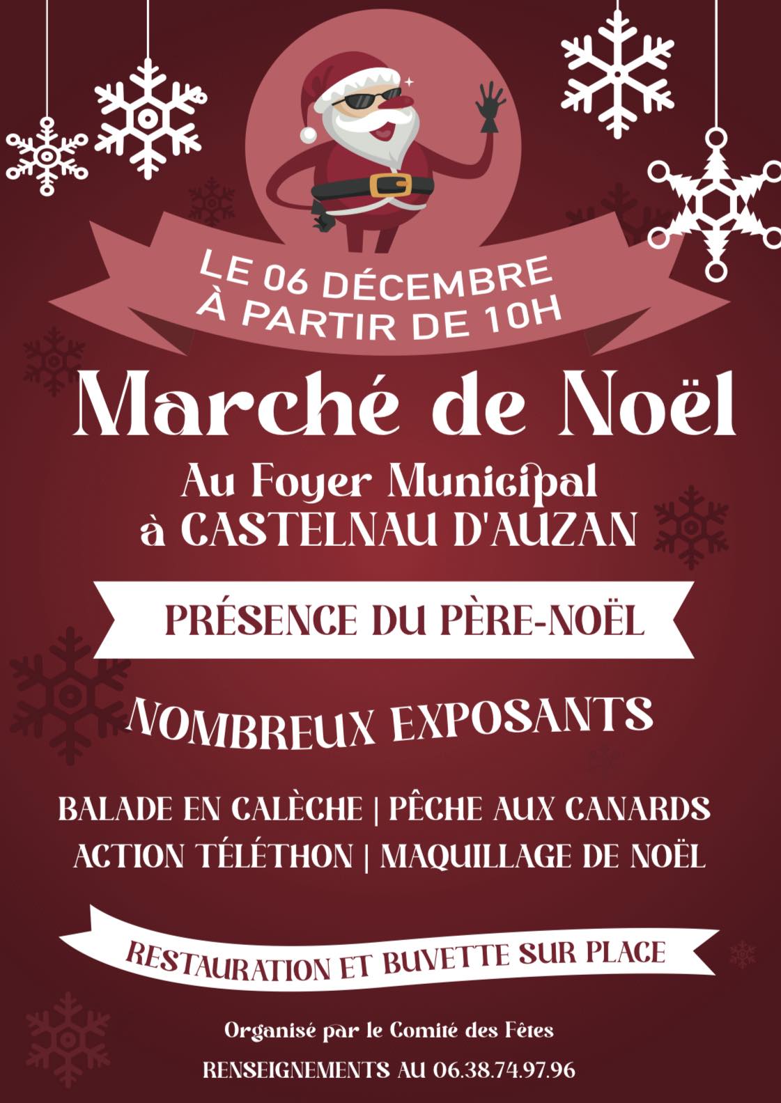 Castelnau d'Auzan 1 Place de la Mairie, 32440 Castelnau d'Auzan Labarrère, FranceMarché de Noël, organisé par le Comité de Fêtes le samedi 6 décembre à Castelnau d’Auzan, au foyer municipal.